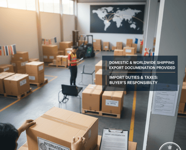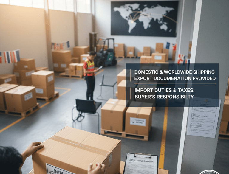 Domestic & International shipping available, Export documentation provided upon request,Import duties and taxes are the responsibility of the buyer